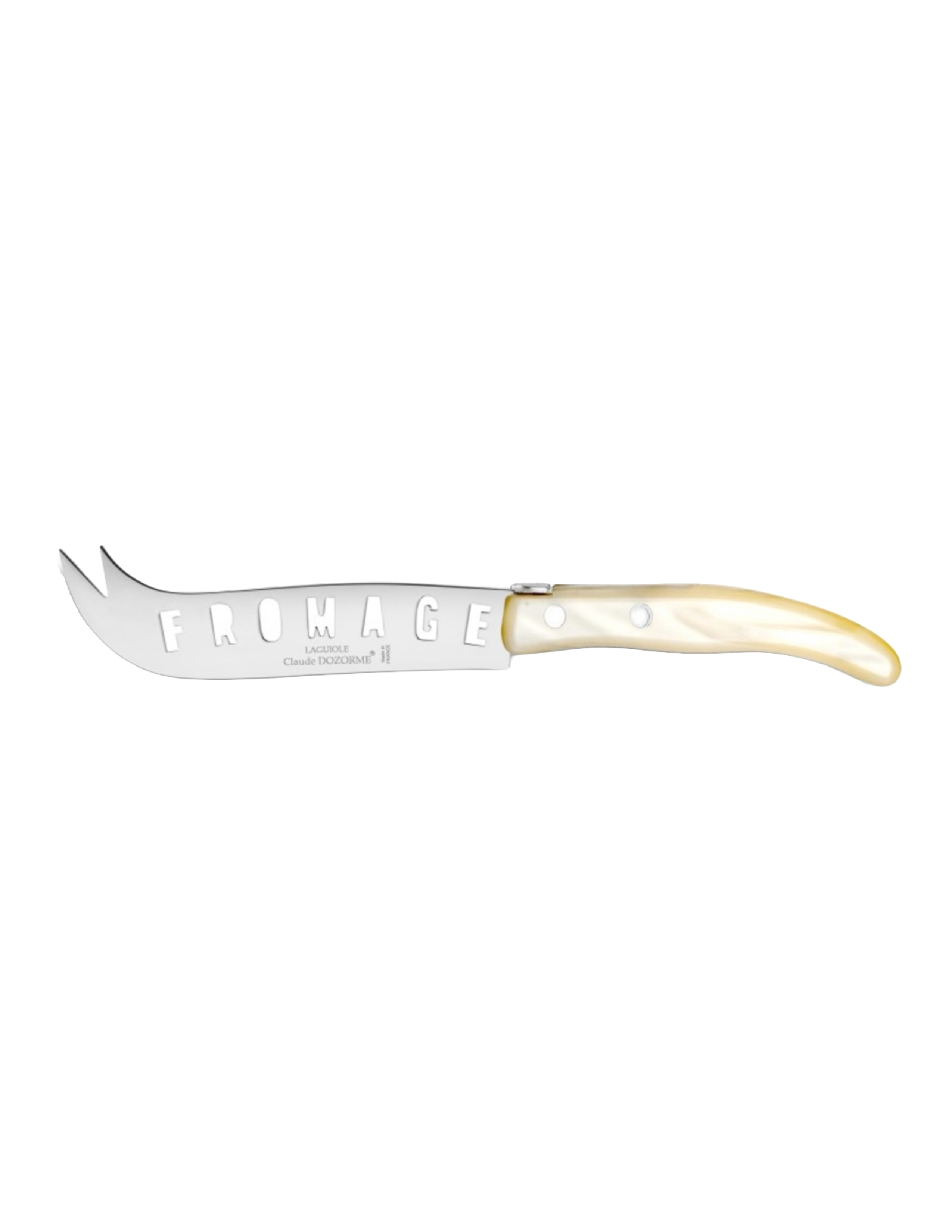 Made by one of the oldest knife making houses in France, Cladue Dozorme handcrafted knives feature a high-polish, stainless steel blade, and a handle of superior quality and fit. This XXL Cheese Knife is made wit spikes at the end of the blade to make serving easier.