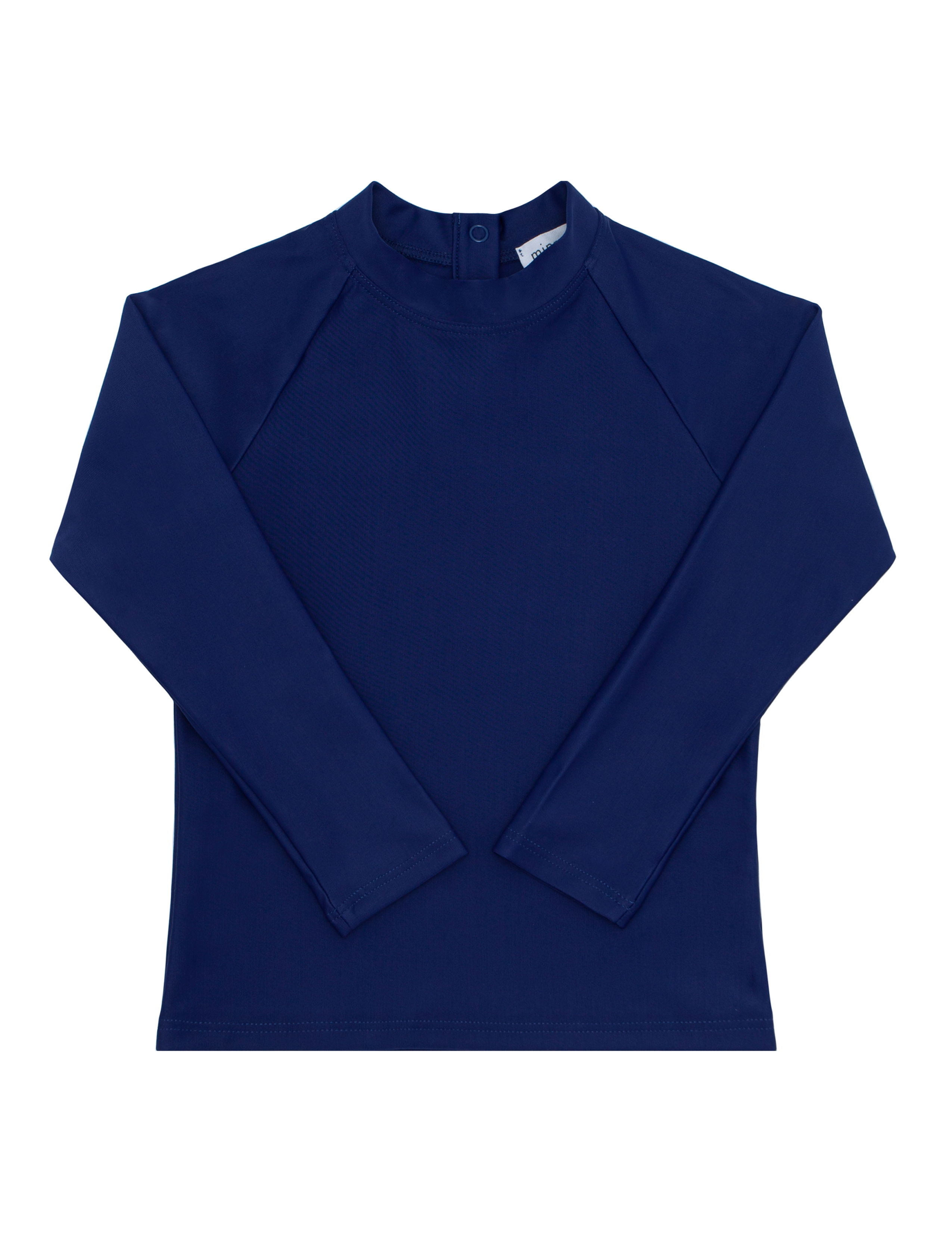 This unisex long sleeve rashguard is unlined for a lighter feel with raglan sleeves that allow for plenty of movement and a closer fit. designed for extra coverage, this full coverage top will help to keep your littles sun-safe. available in our signature navy, a breeze to mix and match with your minnow collection!