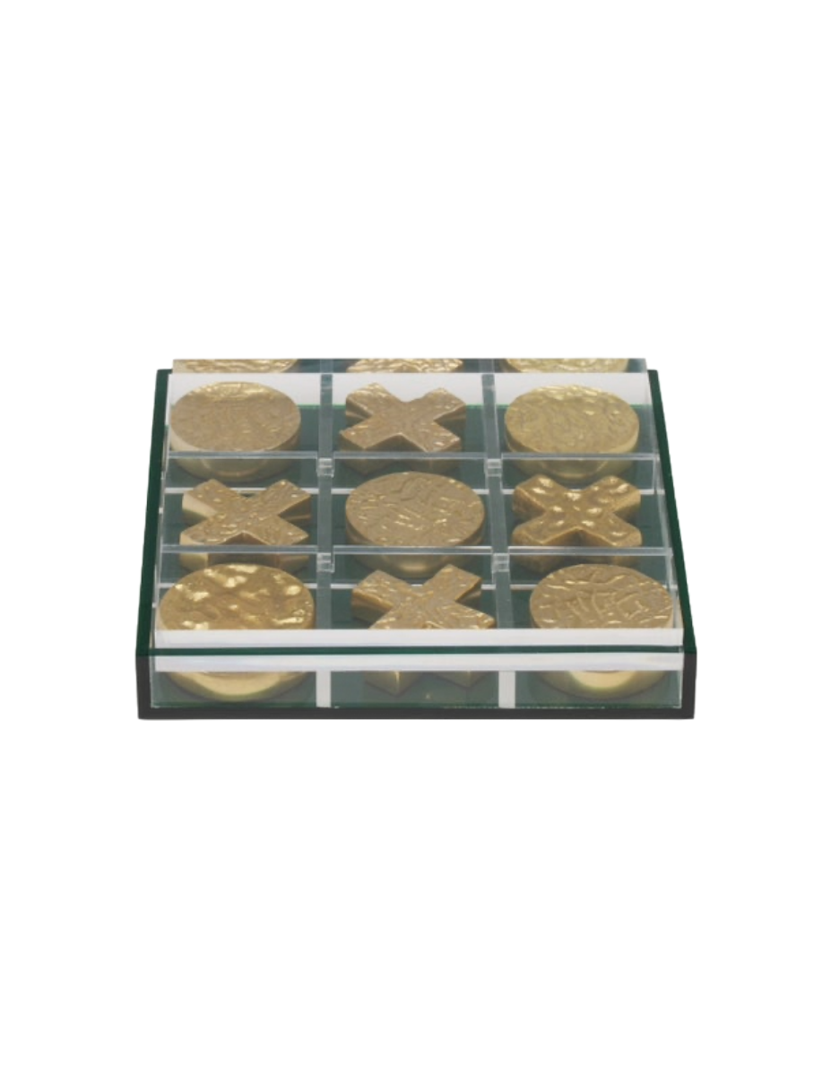 Tic tac toe gets a glow-up with textured gold pieces and cool acrylic bases.
