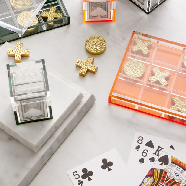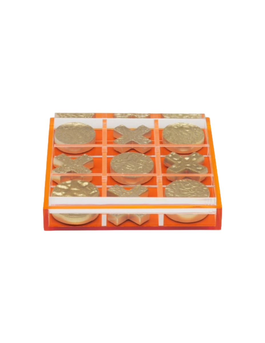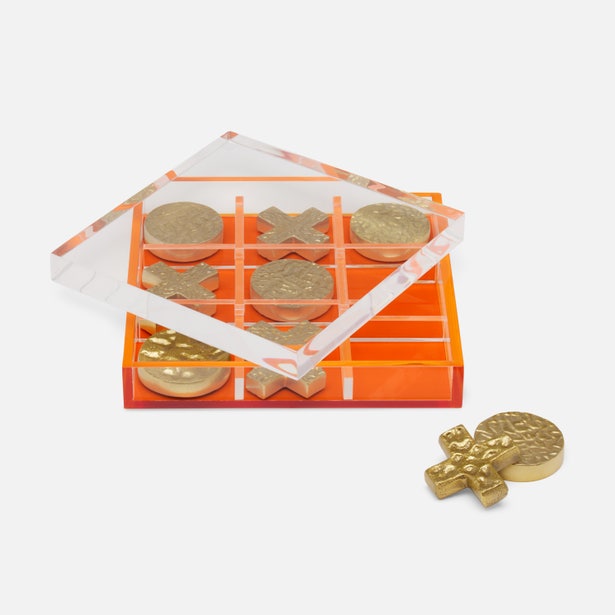 Tic tac toe gets a glow-up with textured gold pieces and cool acrylic bases.