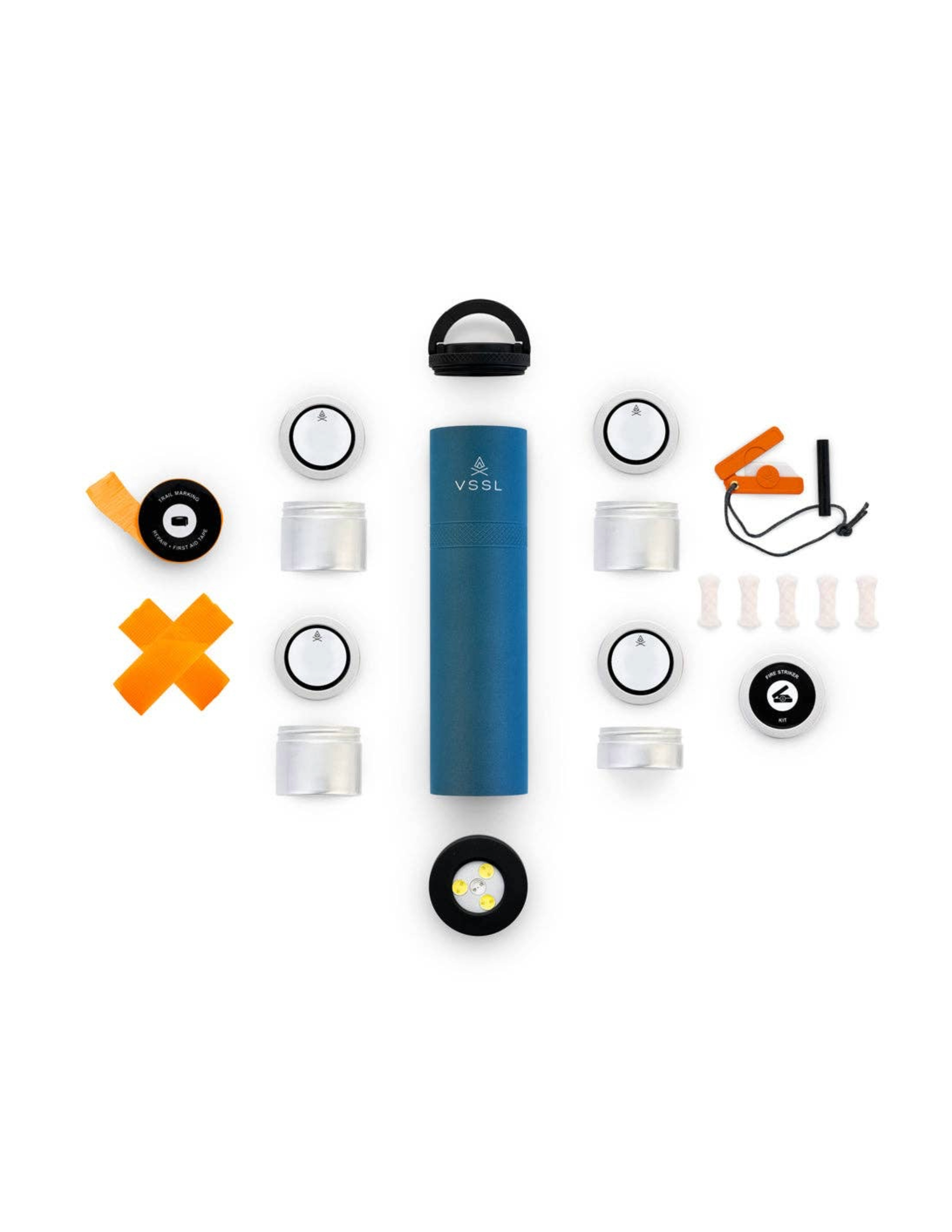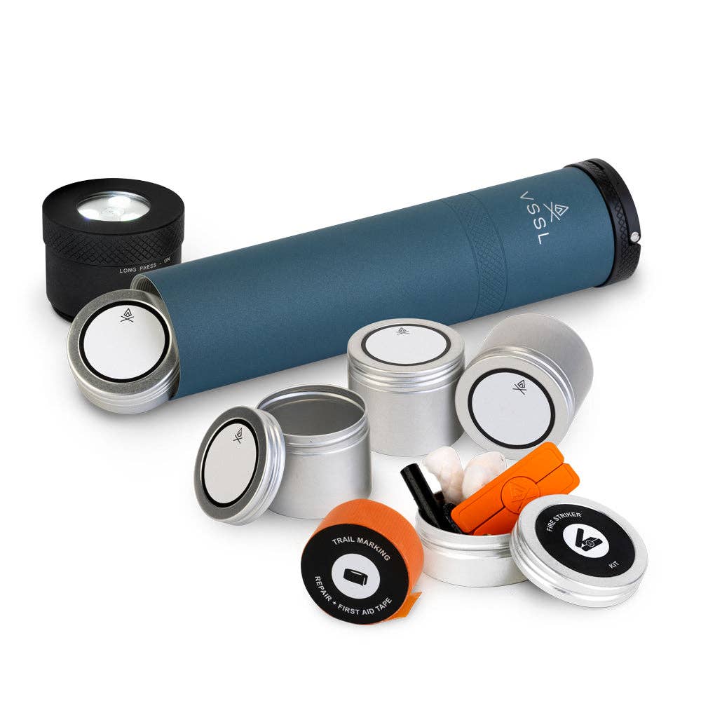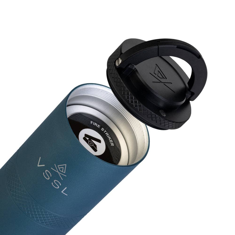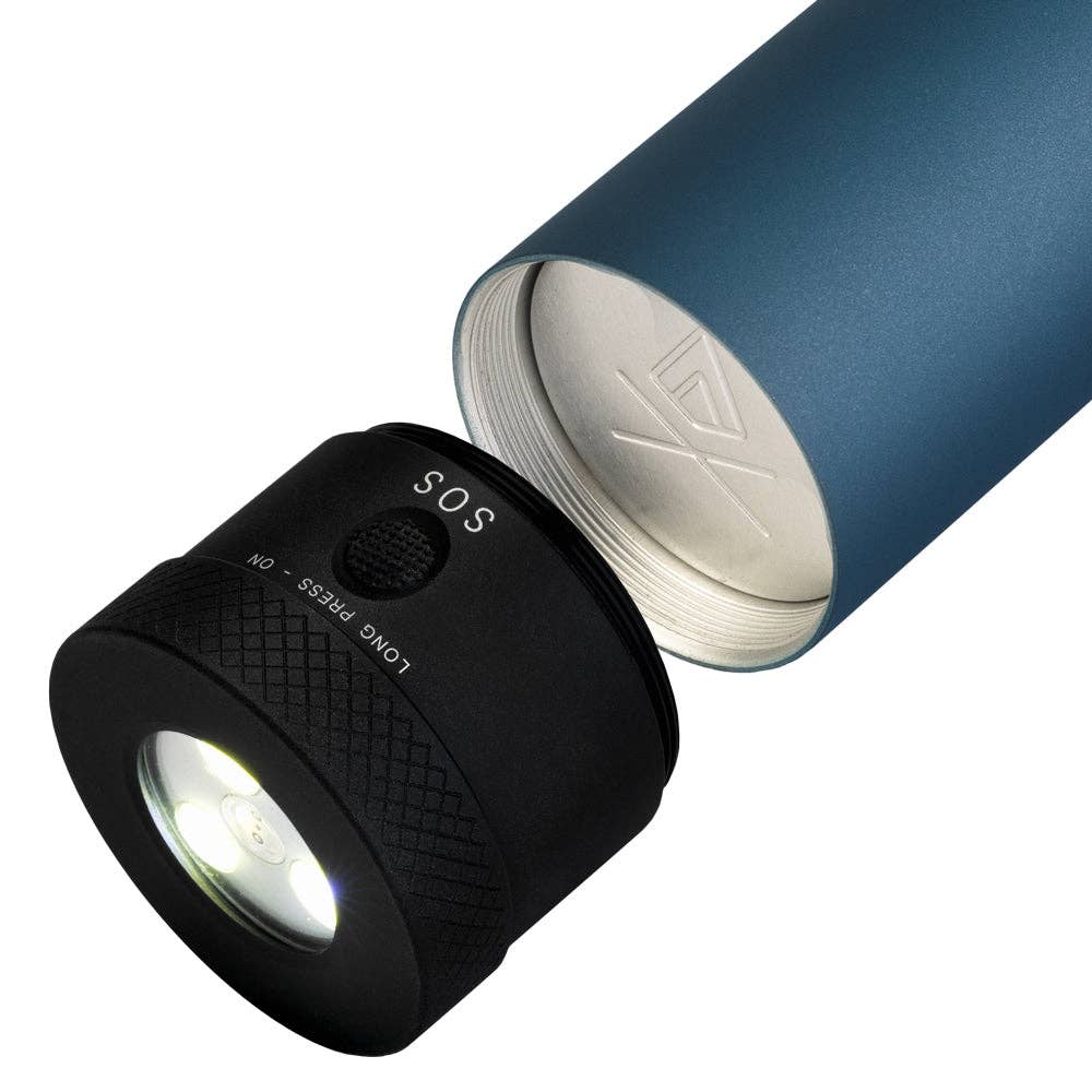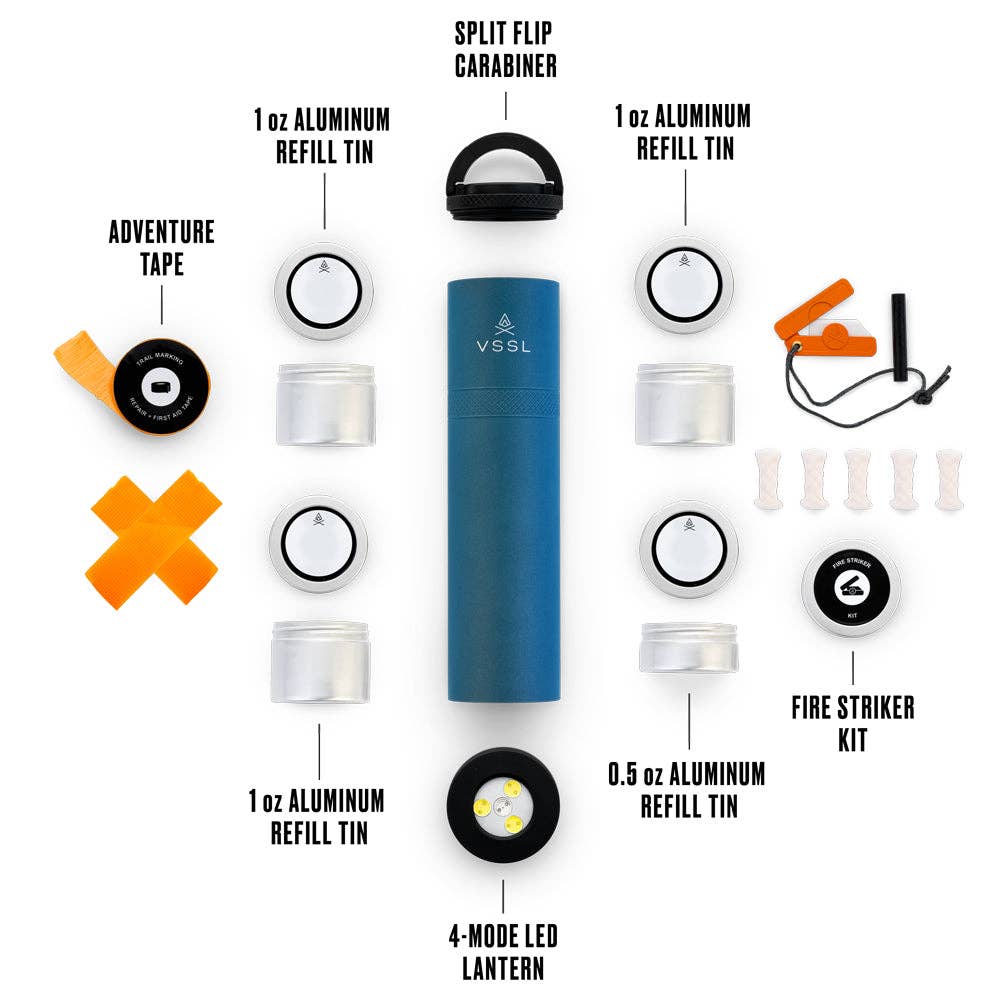 A must-have for all outdoor enthusiasts. With military-grade aluminum and water-resistant design, this compact kit packs two critical camping essentials, our exclusive Fire Striker Tin ensuring you are outfitted with a premium fire prep tool regardless of the weather and multi-purpose adventure tape. With the four additional aluminum refill tins, you can personalize the supplies you need paired with Split Flip Carabiner top and the 4-mode LED lantern you can have confidence in any condition.