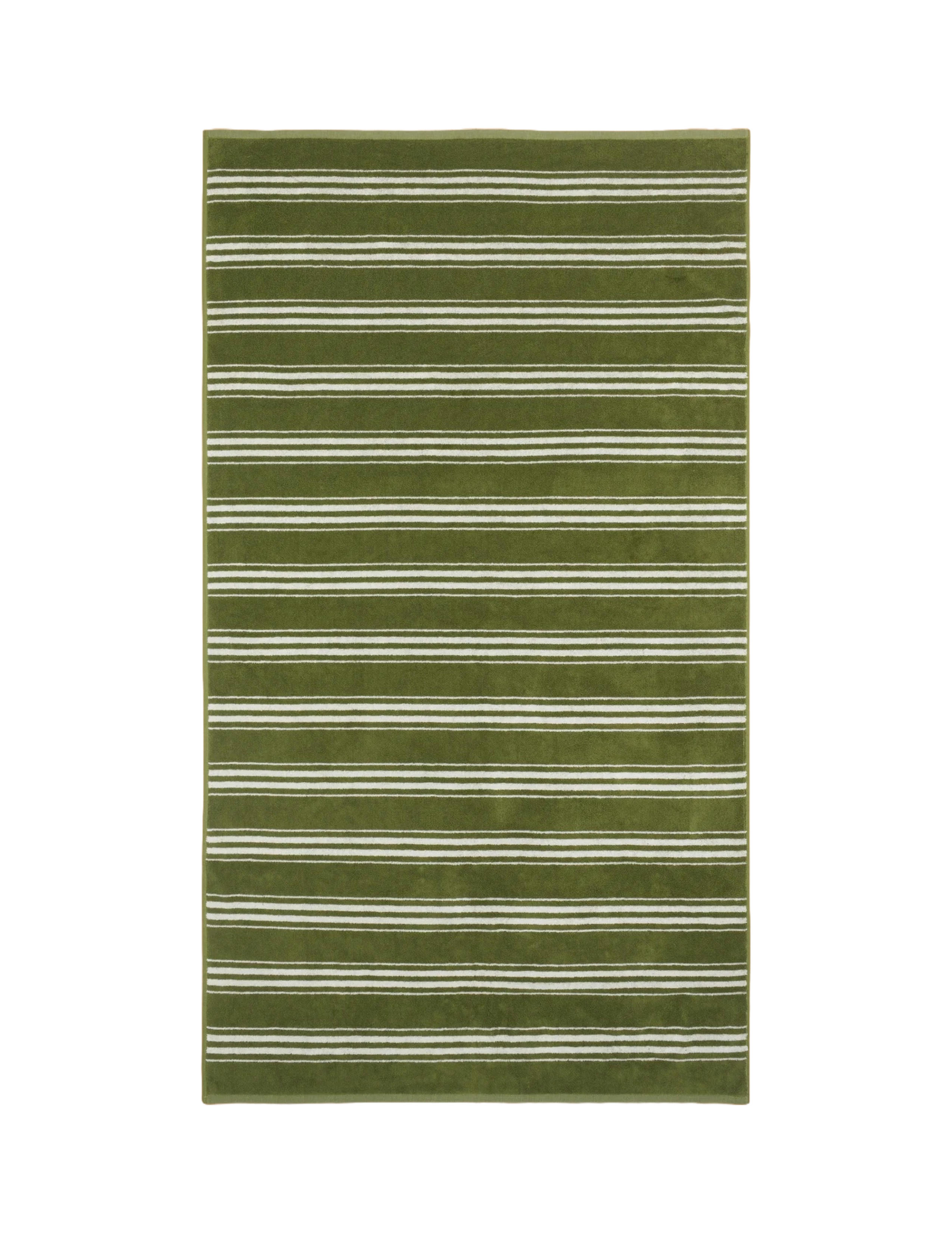 Pool Towels from Autumn Sonata. A plush, generously-proportioned organic cotton towel constructed in a double-sided jacquard weave. The towels are oversized and extremely absorbent–perfect for use as a beach mat, or to simply dry off.