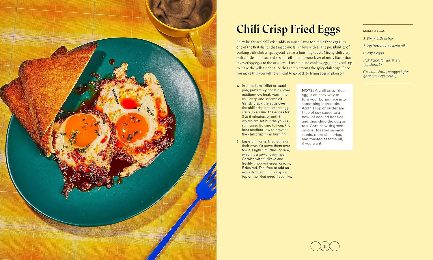 NO-RECIPE RECIPES: In addition to the 50 recipes for snacks, weeknight meals, sides, and desserts, there are dozens of pairing suggestions and flavor guides to take your love of chili crisp to the next level.