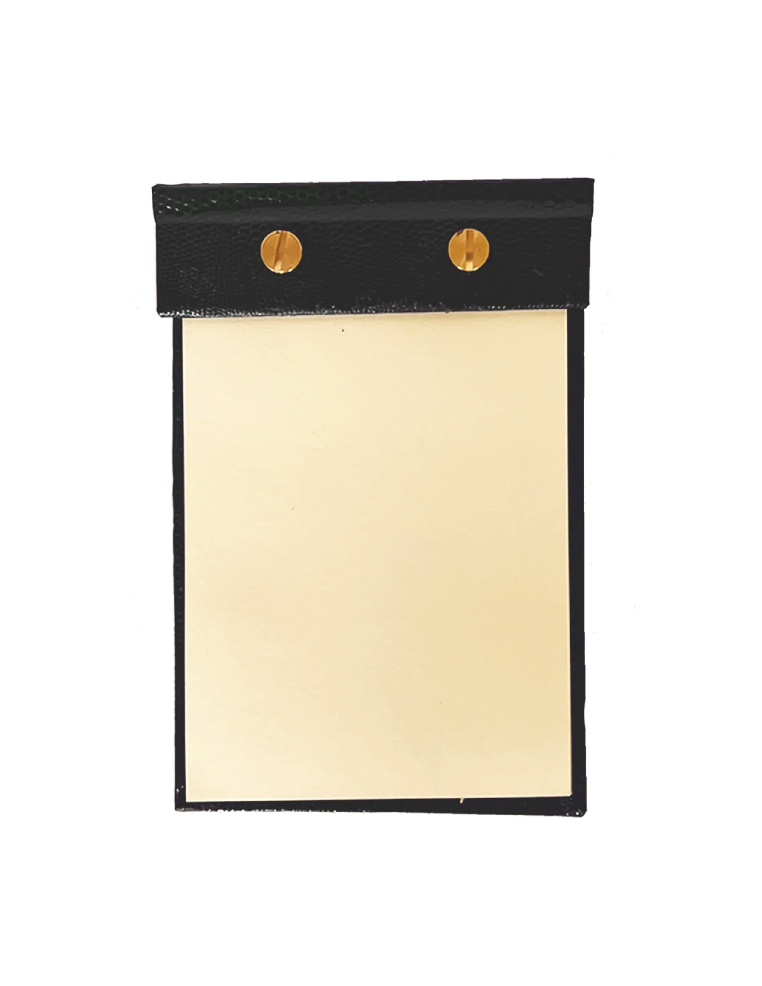 This clean and elegant notepad is a wonderful men's gift and a great solution for all the to do lists that typically litter the desk. Each jotter block has a paper pad attached with elegant brass screws. The paper is perforated to allow for ease of tearing off.