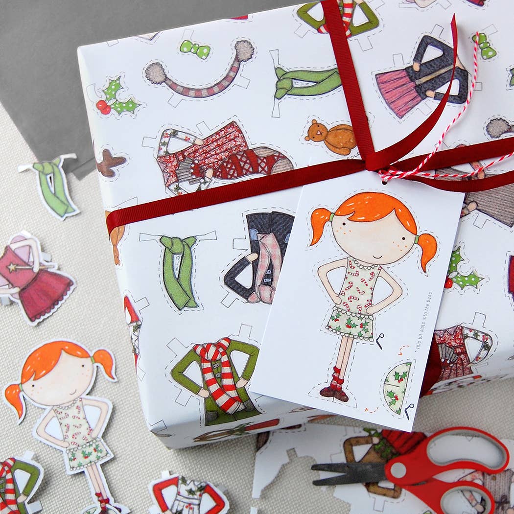 This unique Christmas paper doll wrapping paper set is a brilliantly fun addition to your Christmas presents. The included gift tags can each be cut out to make a festive Clara paper doll.