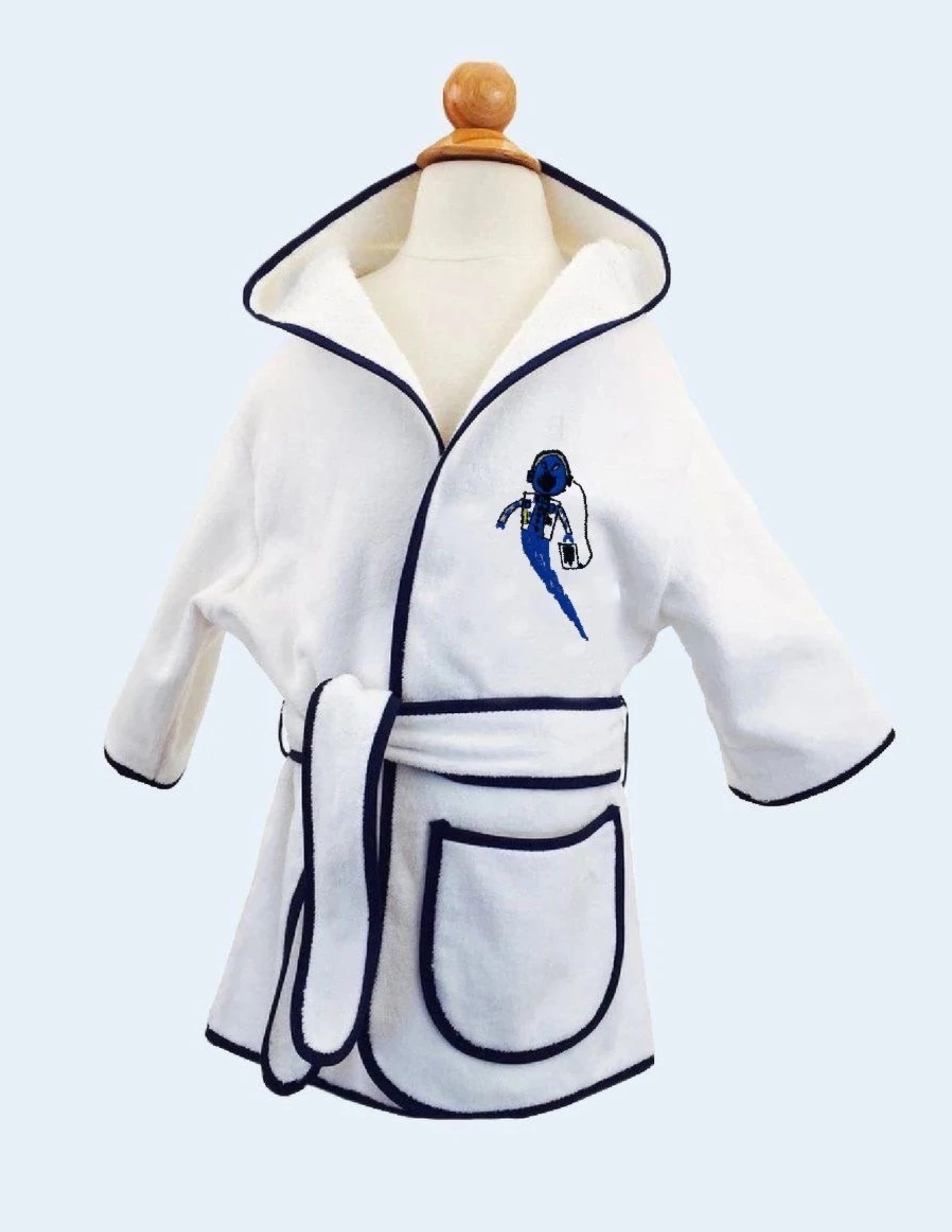 Cece Dupraz's tried & true favorite and #1 seller is their signature hooded kid robe -- now with the ultimate personalization that you love. Made of 100% cotton terry, the outside is plush velour Terry while the inside is absorbent (towel) Terry.