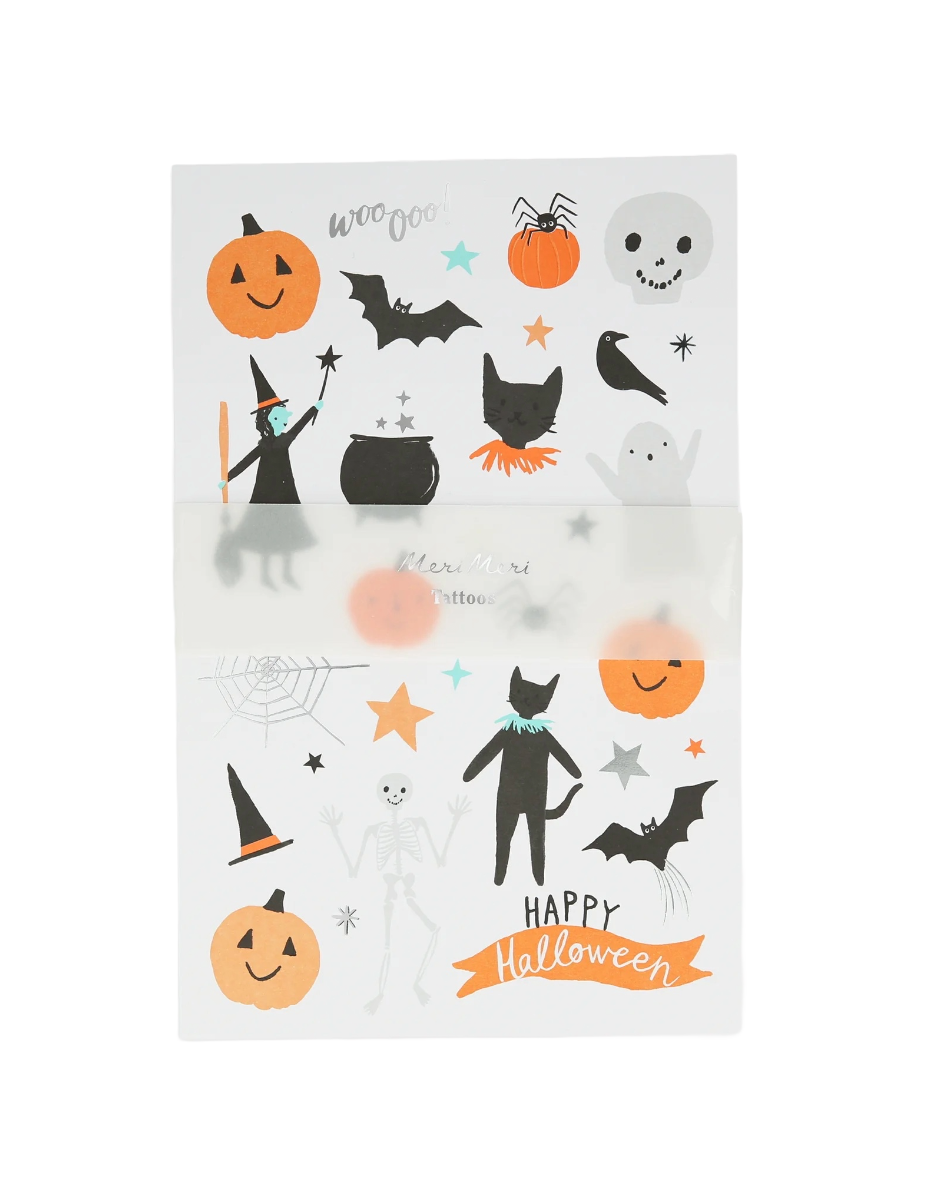 Wooooo! These versatile Halloween character temporary tattoos are a must-have for your Halloween party. Use them to add to any Halloween dress-up, as a craft activity, at a tattoo party station or pop them into party bags.