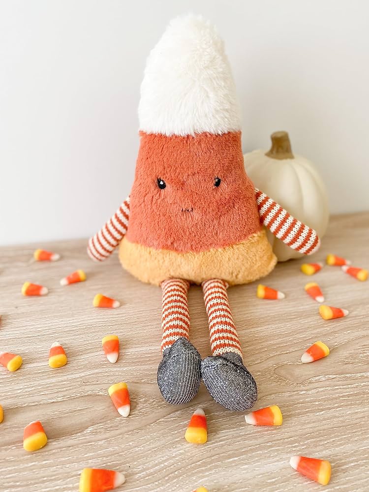 Gift a little one the ultimate Halloween treat: our Sweet Candy Corn Plush Toy. A new addition to Mon Ami’s eerie-sistible Halloween plush toy collection, this candy corn plush toy boasts a traditional white, orange and yellow color palette along with an adorable face and striped arms and legs to bring cheer over fear to a young child’s celebration. Ultra-plush and oversized, our candy corn Halloween plush toy is sure to sweeten any nursery or playroom.